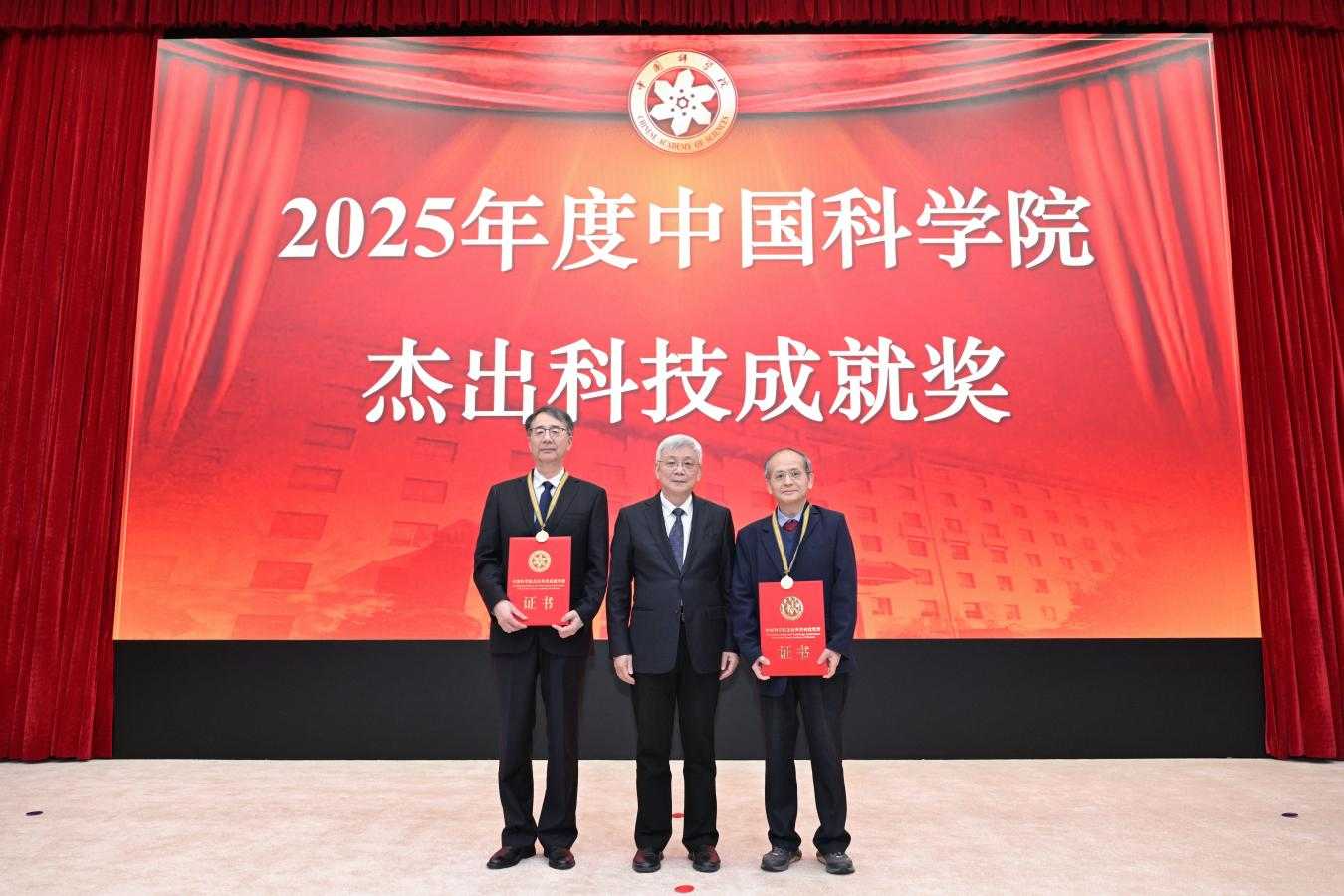 会议还颁发了2025年度院杰出科技成就奖、青年科学家奖、国际科技合作奖,表彰了院先进集体和先进工作者、年度人物和年度团队。